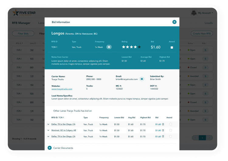 Five Star is a brand powered by eCapital, a leading freight factoring company with offices throughout the U.S. and Canada. We've been working with them on creating a transportation industry platform where brokers and carriers can easily connect, find or load boards in real-time and enable their businesses for future growth.